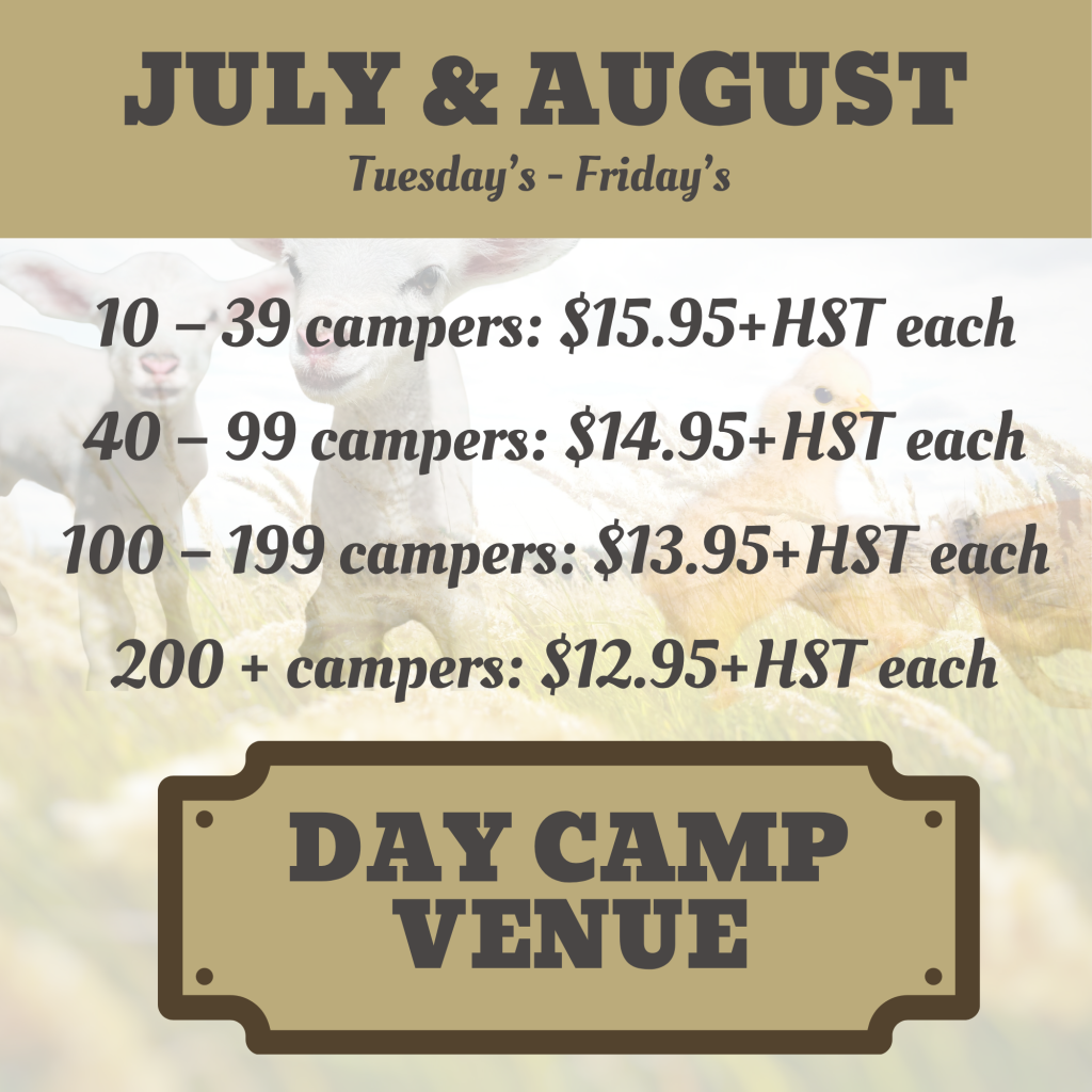 Day Camp bookings available Tuesday – Friday during July & August.